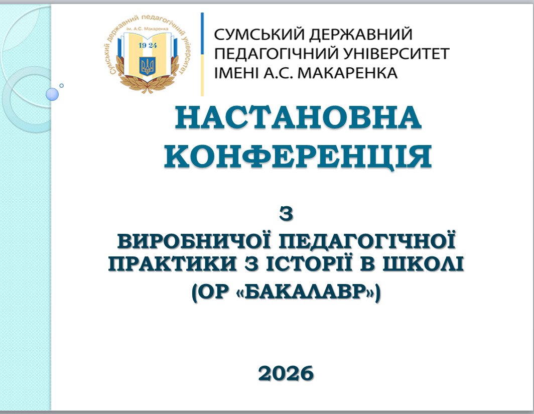 2 лютого 2026 року в Навчально-науковому інституті історії, права та міжнародних відносин СумДПУ імені А.С. Макаренка відбулася настановча конференція за профілем майбутньої професії, яка стала важливим етапом підготовки здобувачів освіти спеціальності Середня освіта (Історія) до проходження практичної складової навчання.