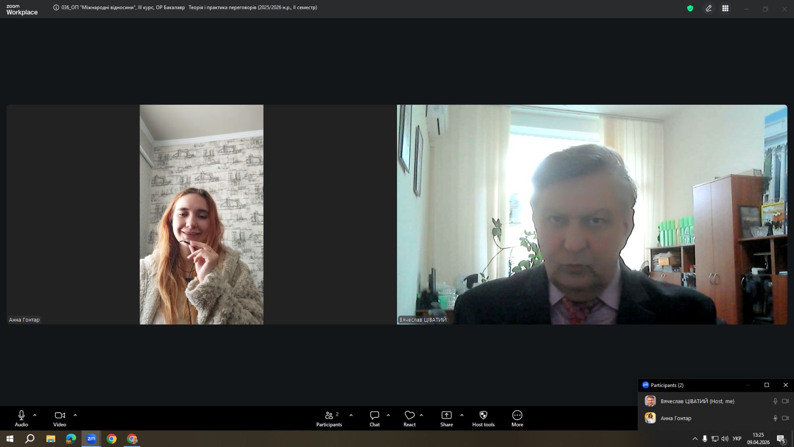 Професійно орієнтована Лекція була представлена здобувачам вищої освіти (спеціальність Міжнародні відносини С3/291) у форматі навчальної дисципліни «Теорія і практика переговорів» (доц. Вячеслав ЦІВАТИЙ). До Лекції долучилися зав. кафедри, канд. пед. наук, доцент Світлана МОЦАК, канд. Іст. наук, доцент Вячеслав ЦІВАТИЙ.
