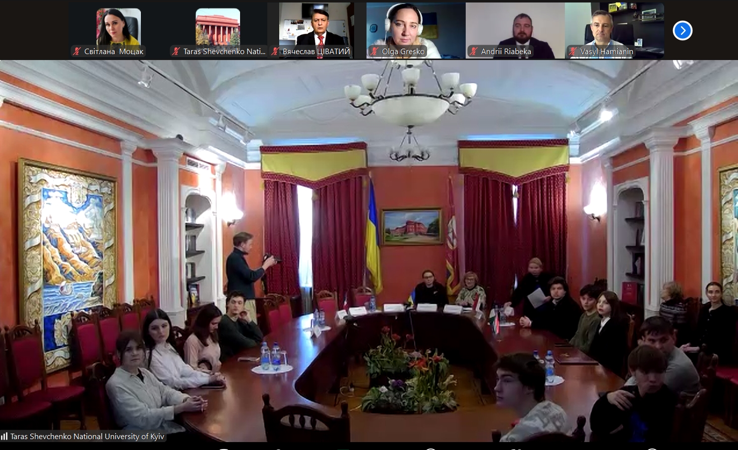 Вдячні за сприяння очільникам напряму міжнародного співробітництва КНУ імені Тараса Шевченка за можливість долучитися до зустрічі (Володимир БУГРОВ, Ксенія СМИРНОВА, Роман ПЕТЮР, Надія СЕРЬОГІНА). На зустрічі були присутні здобувачі вищої освіти НН Інституту історії, права і міжнародних відносин Сумського державного педагогічного університету (спеціальність «Міжнародні відносини, суспільні комунікації та регіональні студії», ОП «Міжнародні відносини», ОП Середня освіта (історія та громадянська освіта).