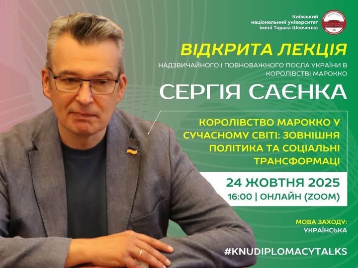 26 жовтня 2025 року відбулася онлайн-зустрічі з Надзвичайним і Повноважним Послом України в Королівстві Марокко Сергієм САЄНКОМ.